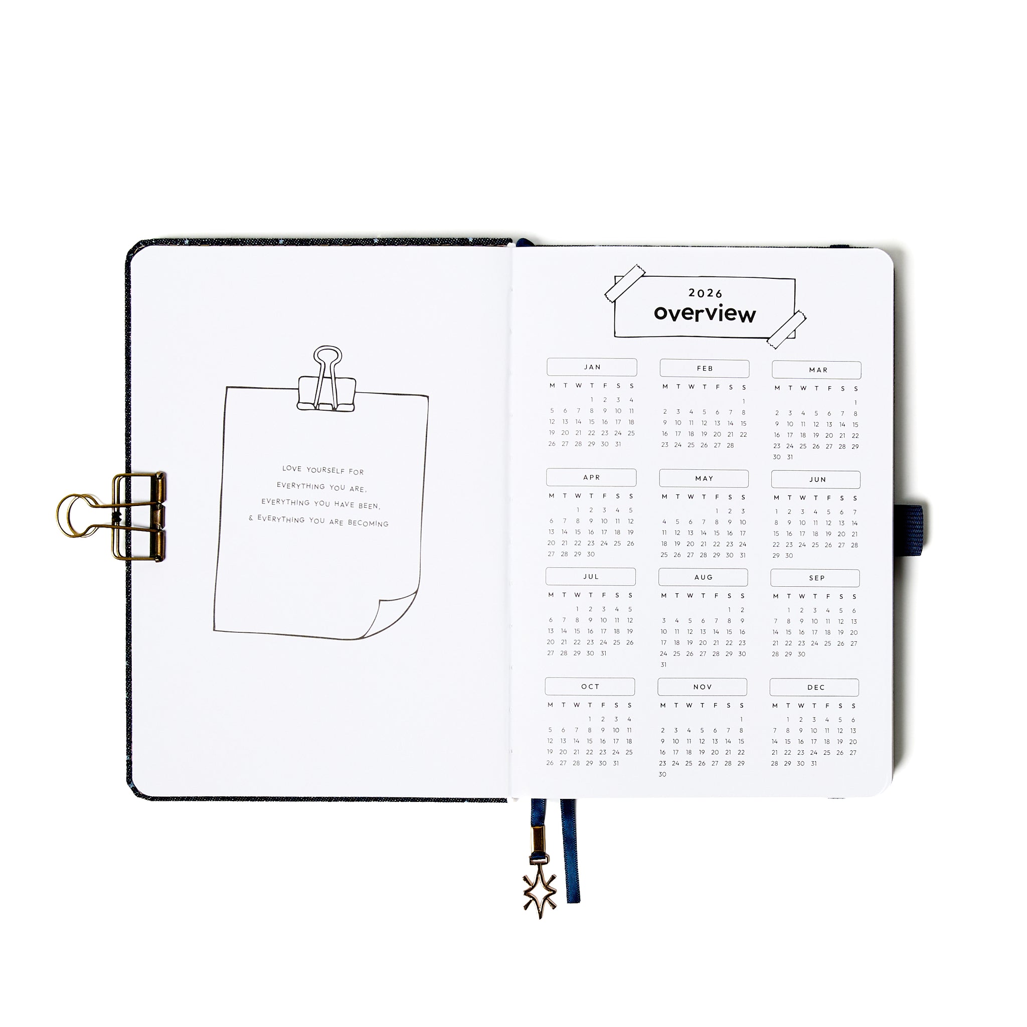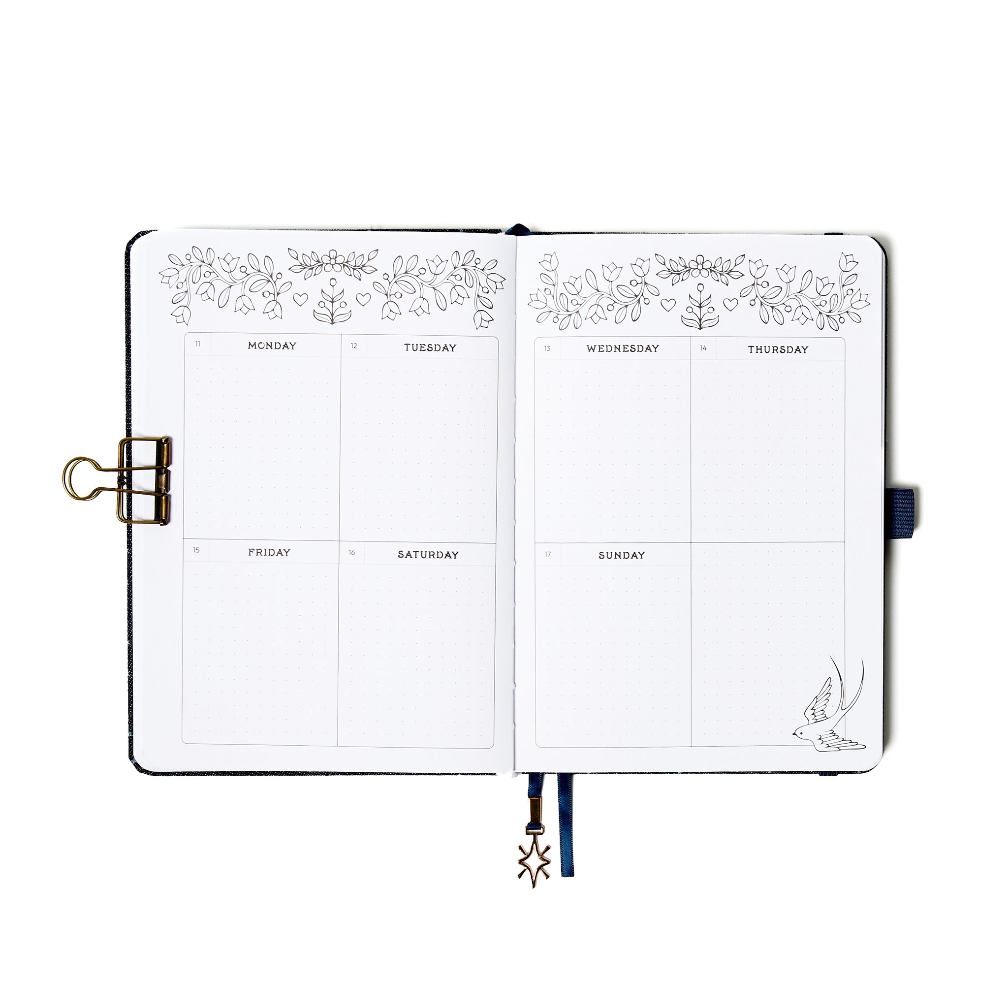 - Monthly and weekly planner spreads
