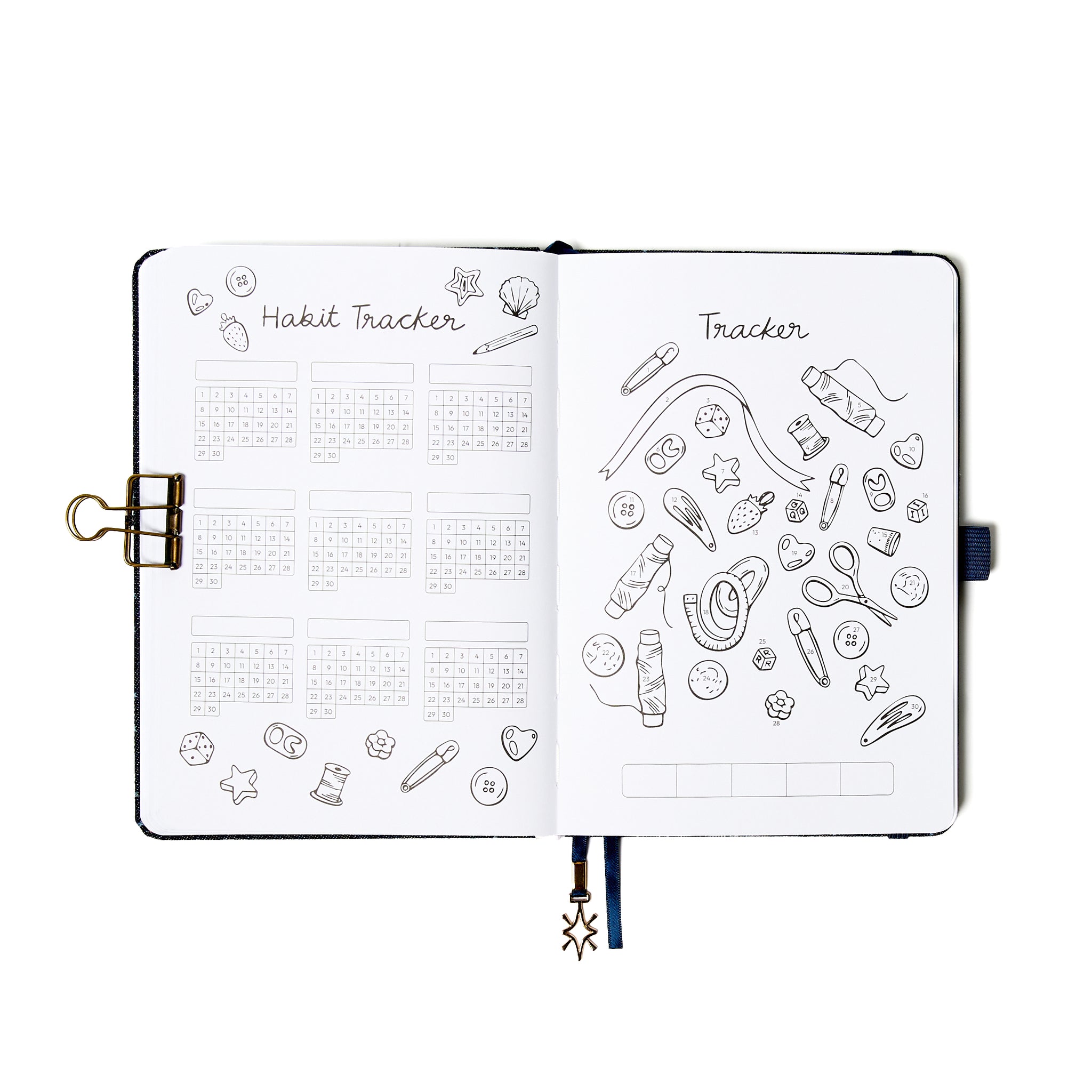 - Monthly mood trackers, habit trackers, goal-setting spreads